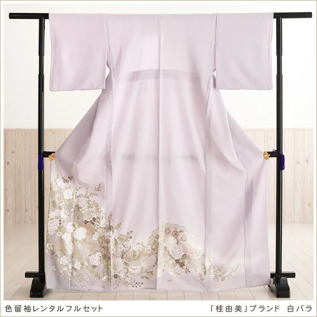 色留袖レンタル 桂由美 it007-3 五つ紋 結婚式 叙勲 卒業式 入学式 着物レンタル 食事会 表彰式 色留め袖 親族 姉 式典 人気 正絹 高級ブランド 白バラ