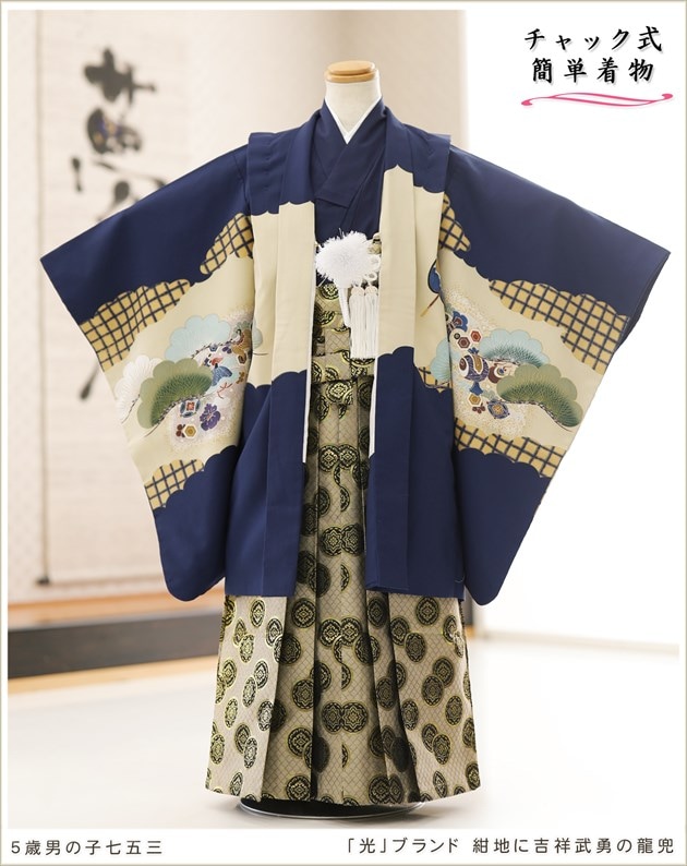 zd5014(「光」ブランド 紺地に吉祥武勇の龍兜 /5歳男の子羽織袴)