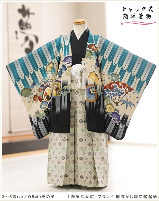 zd4024(「陽気な天使」ブランド 緑ぼかし鷹に縁起柄 /5歳男の子羽織袴)