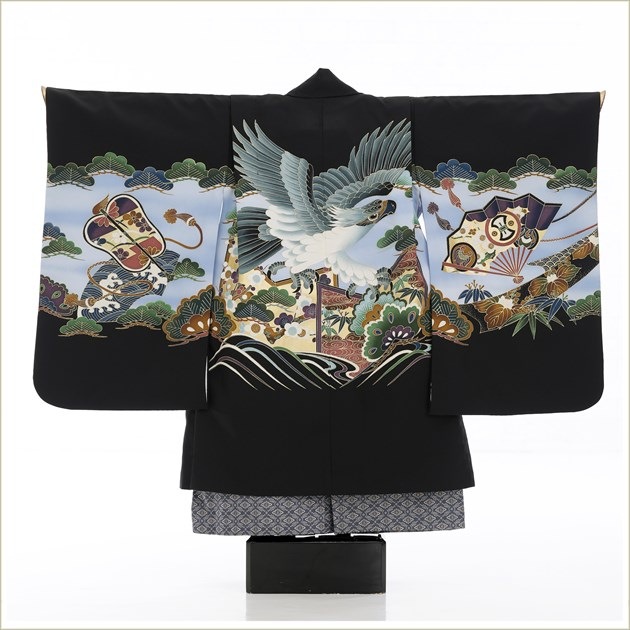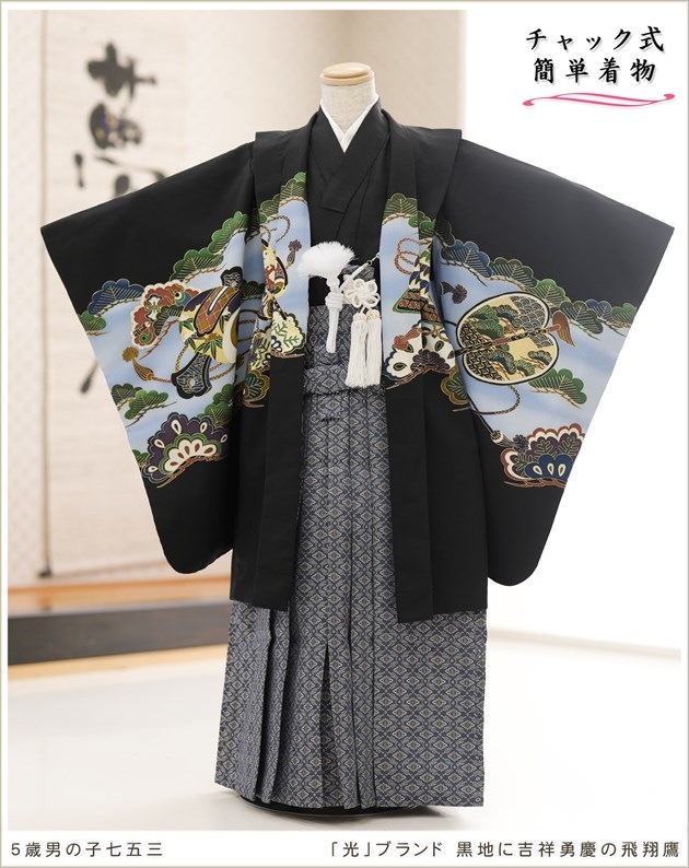 zd5031(「光」ブランド 黒地に吉祥勇慶の飛翔鷹 /5歳男の子羽織袴)