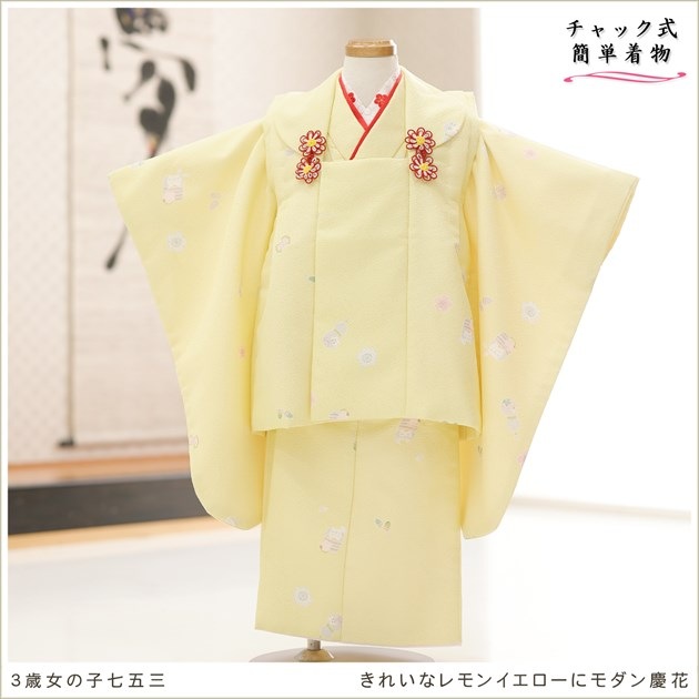zf0039 (きれいなレモンイエローにモダン慶花 /チャックアップ3歳女の子被布)