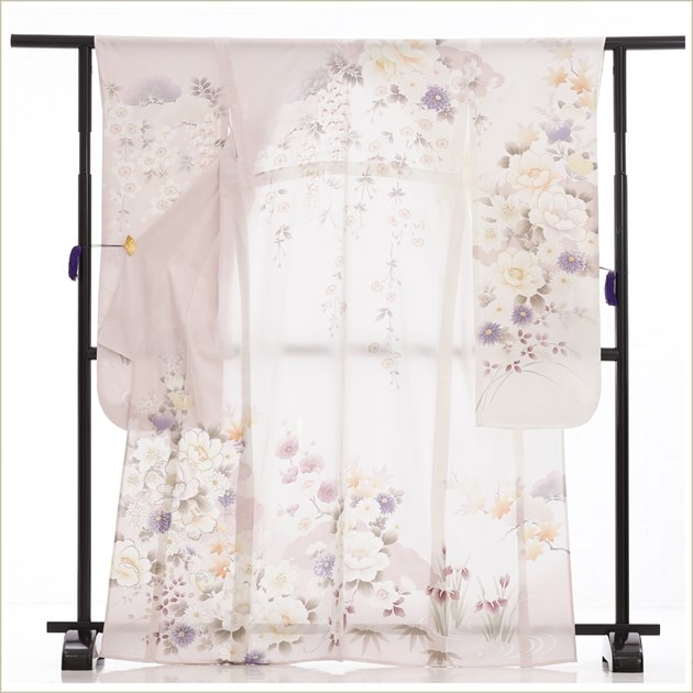 単衣 夏用 振袖レンタル sf8012 フルセット 高級振り袖 着物 結婚式 結納 夏の成人式 夏期イベント 5月 6月 7月 8月 9月 10月 kimono furisode 涼しい ひとえ 古典 2024 白×くすみグレー吉祥絢爛慶花