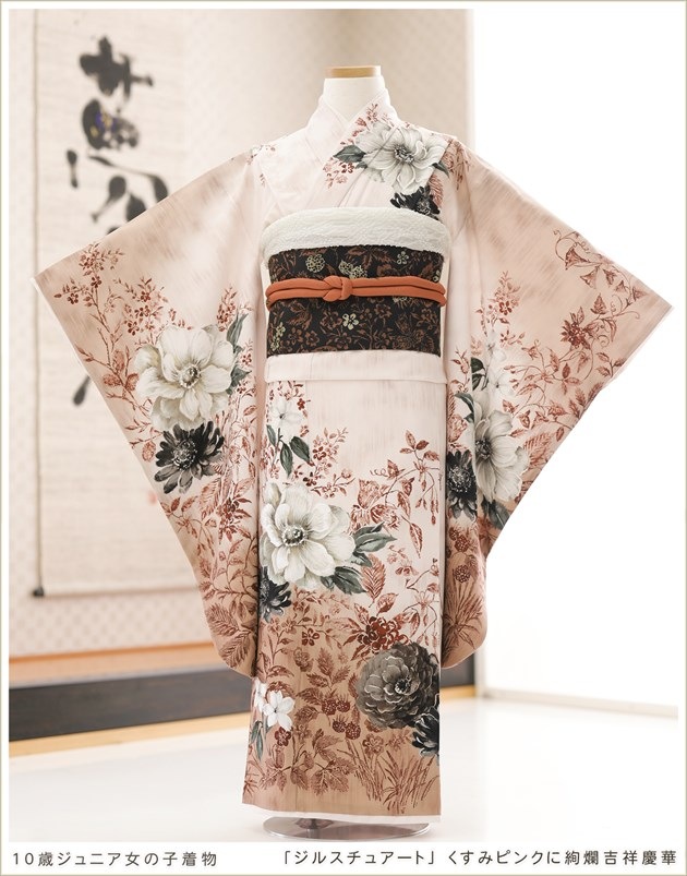 jk1276(「JILLSTUART」ブランド くすみピンクに絢爛吉祥慶華/8歳〜10歳女の子ジュニア用振袖着物)