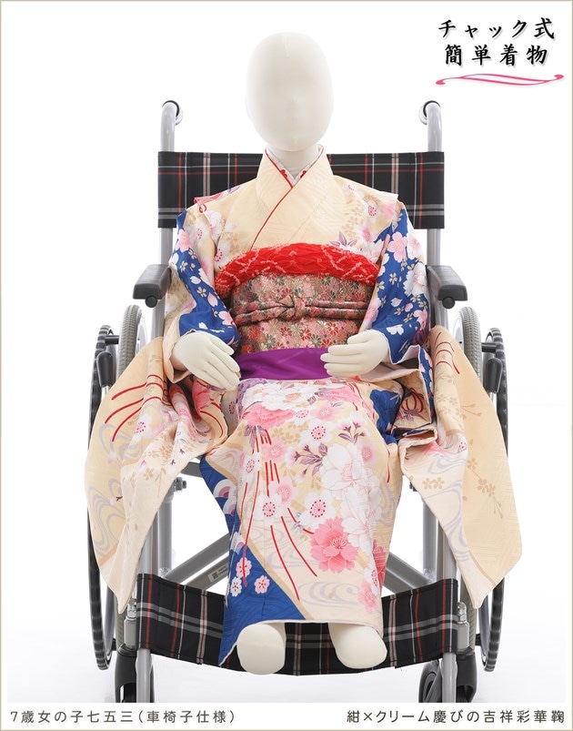 車いす,身長125cm前後,楽チャック着物,難しい7歳用も着付け師いらず