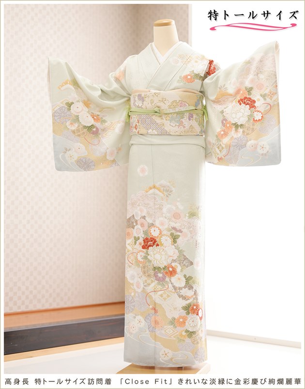 高身長 スーパートールサイズ 180cm 185cm 訪問着レンタル hw1683t 卒業式 母 着物レンタル 入学式 結婚式 七五三 フルセット お宮参り 卒園式 正絹 ママ 母親 kimono 人気 結納 お茶会「Close Fit」ブランド きれいな淡緑に金彩慶び絢爛麗華