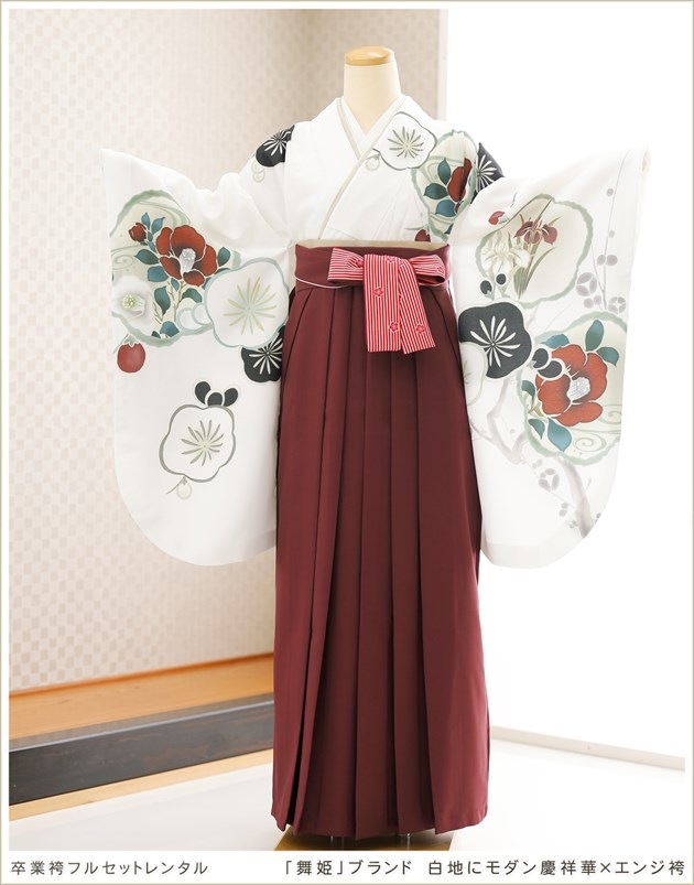 oh5143 (卒業袴レンタル 「舞姫」ブランド 白地にモダン慶祥華×エンジ袴)