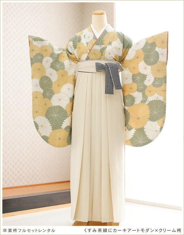 oh5154 (卒業袴レンタル くすみ茶緑にカーキアートモダン×クリーム袴)