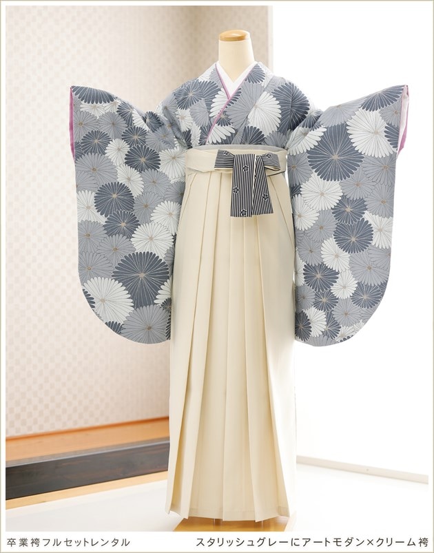 oh5155 (卒業袴レンタル スタリッシュグレーにアートモダン×クリーム袴)