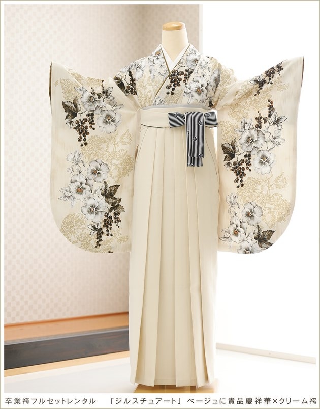 卒業式 袴レンタル oh5169 袴セットレンタル 女性 卒業袴 大学 短大 専門学校 謝恩会 高校生 中学生 大きめ小学生 教師袴 おしゃれ レトロ 3月 4月 人気 春 往復送料無料 2025 高級ブランド「百華」ブランド クリームモダン吉祥花×クリーム袴