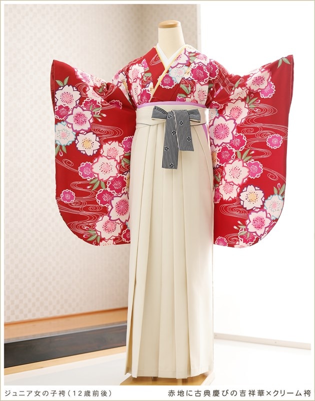 joh5149 (赤地に古典慶びの吉祥華×クリーム袴 /十三参り・卒業式/女の子ジュニア袴)