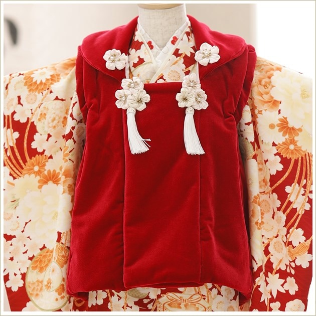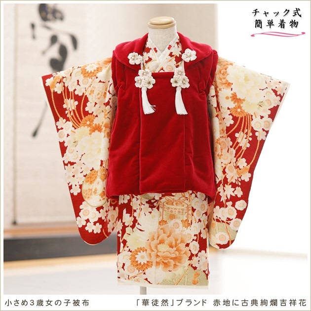 zf2012-2(小さめサイズ 「華徒然」ブランド 赤地に古典絢爛吉祥花/3歳女の子被布)