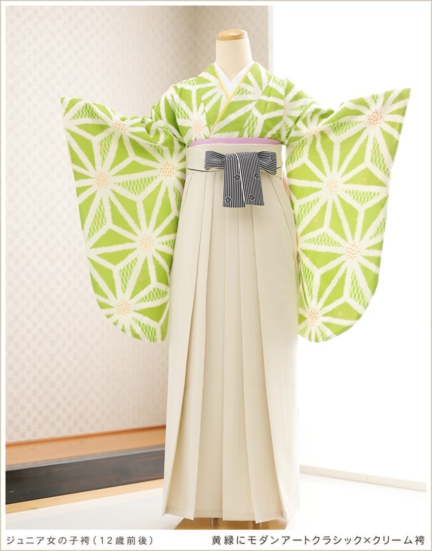 joh5151 (黄緑にモダンアートクラシック×クリーム袴 /十三参り・卒業式/女の子ジュニア袴)