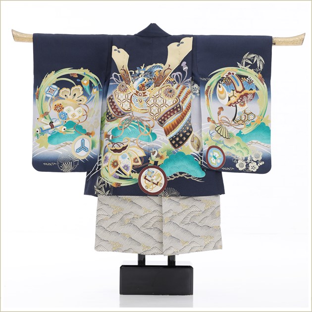 zd3006 (「光」ブランド 紺地に古典吉祥慶龍兜 /3歳男の子羽織袴)