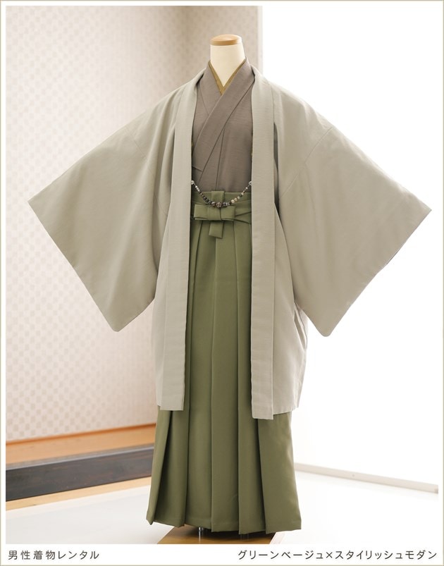 父親 おしゃれでかっこいい 紋付袴レンタル 七五三 お宮参り パパ着物 hkmo004 卒業式 メンズ 羽織袴 男 フルセット 袴レンタル 男性着物レンタル 貸衣装 kimono 前撮り イベント 和服 璃寛緑茶色にスタイリッシュモダン