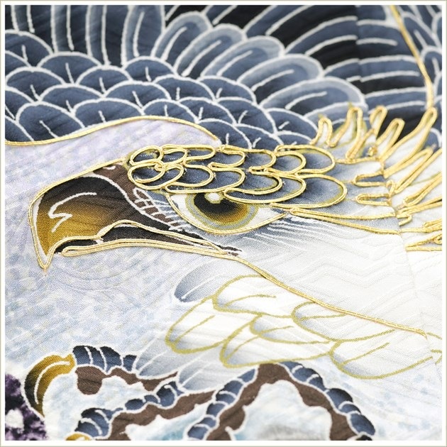 d5676 (プレミアム高級正絹着物 「陽気な天使」ブランド グレー絞り吉祥飛翔鷹/5歳男児七五三)