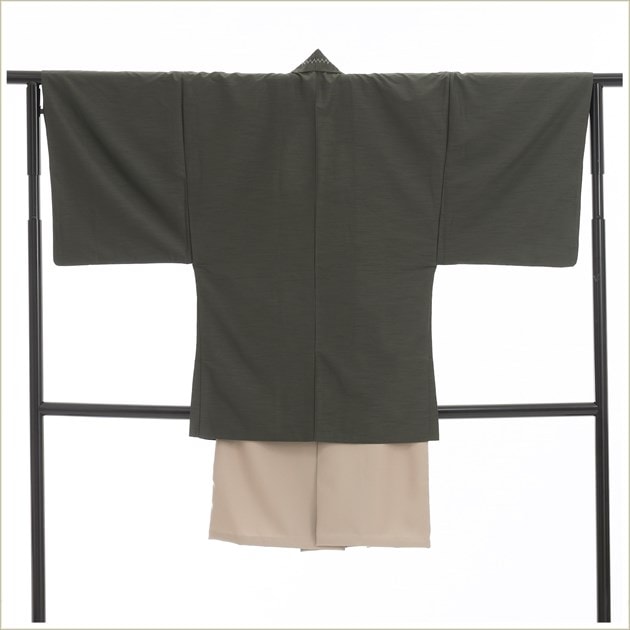 hkmo012(濃オリーブグリーン×スタイルベージュ袴/紋付きフルセット)