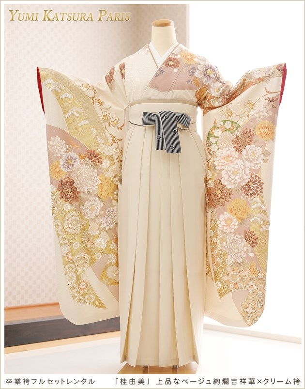 sfoh8042(卒業袴レンタル 「桂由美」ブランド 上品なベージュ絢爛吉祥華×クリーム袴/大人女性用)