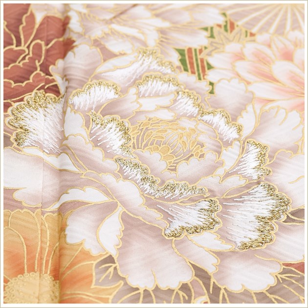 sf8042(「桂由美」 ブランド クリームベージュに絢爛吉祥華 /夏用「単衣」振袖レンタル)