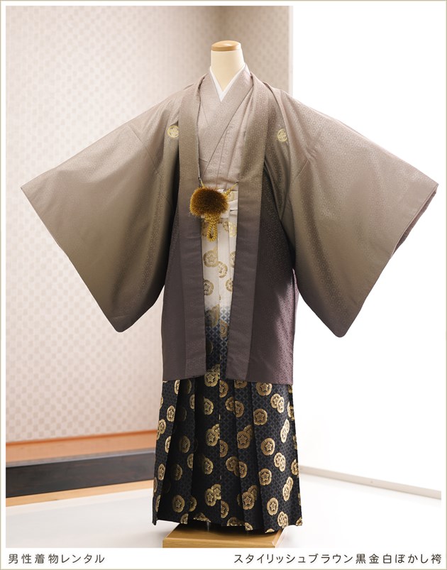 mo283(スタイリッシュブラウン黒金白ぼかし袴/紋付きフルセット)