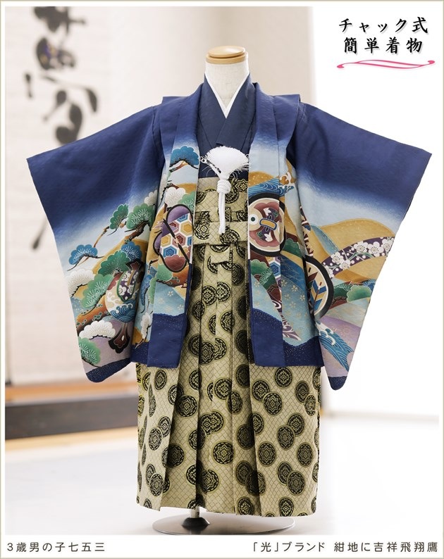 zd3011 (「光」ブランド 紺地に吉祥飛翔鷹 /3歳男の子羽織袴)