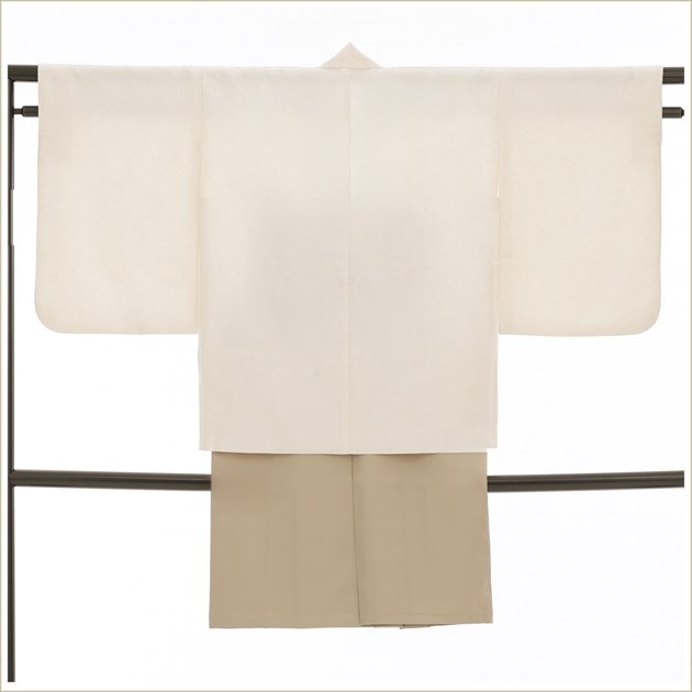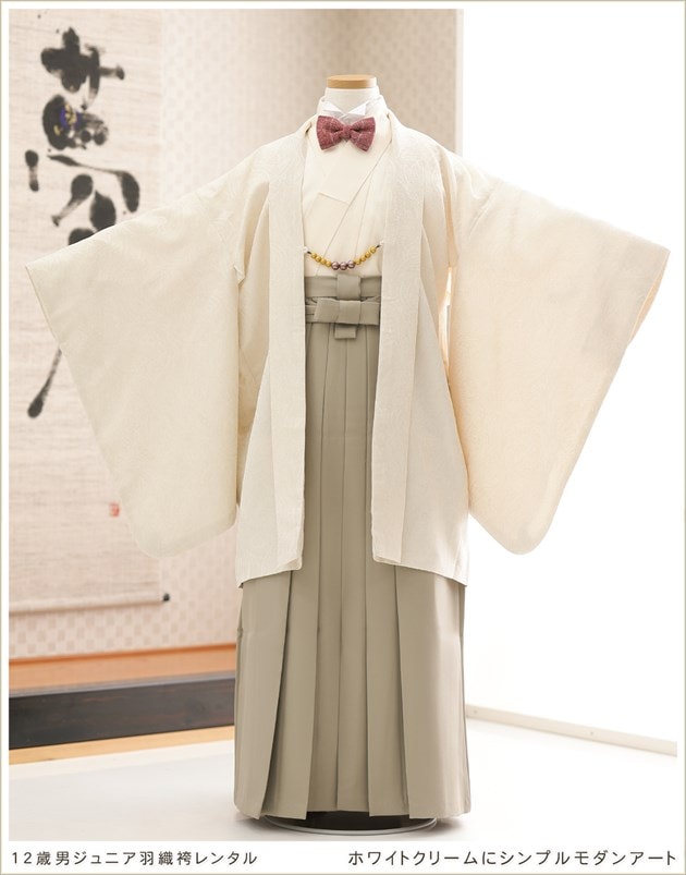 jmo161(12歳前後ジュニア羽織袴「ホワイトクリームにシンプルモダンアート」洋風2wayスタイル)