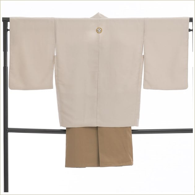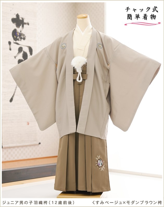 zjmo003(くすみベージュ×モダンブラウン袴 /ジュニア楽チャック羽織袴)