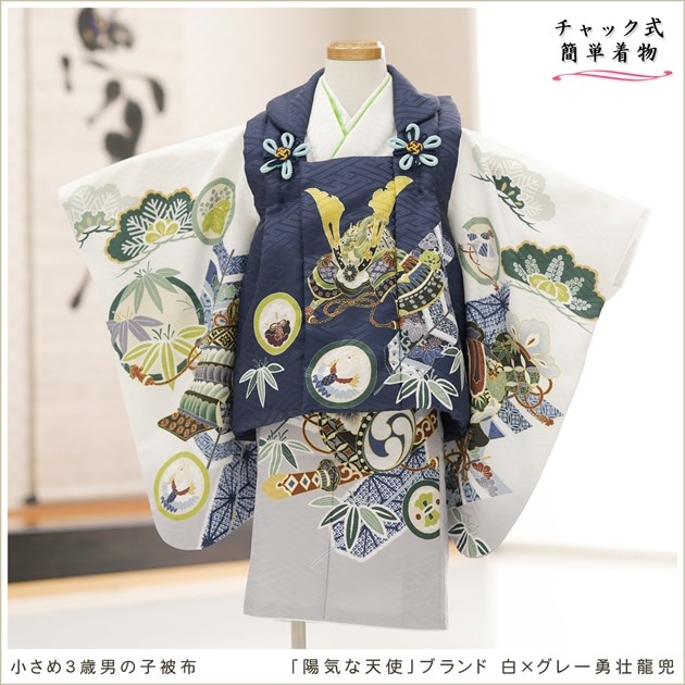 zdf2019-2(「陽気な天使」ブランド 白×グレー勇壮龍兜 /2〜3歳男の子被布)