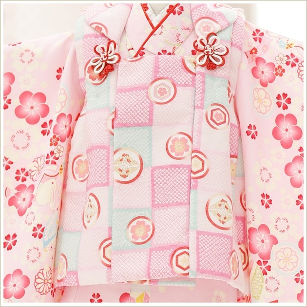zf0106 (ピンクに祝彩花と吉祥市松 /チャックアップ3歳女の子被布)