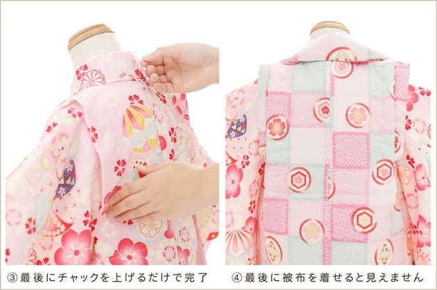身長95cm前後,楽チャック着物で難しい帯仕様も簡単着付け,着付け師いらず