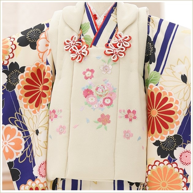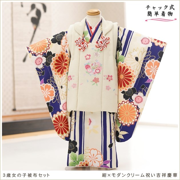 zf0112 (紺×モダンクリーム祝い吉祥慶華 /チャックアップ3歳女の子被布)