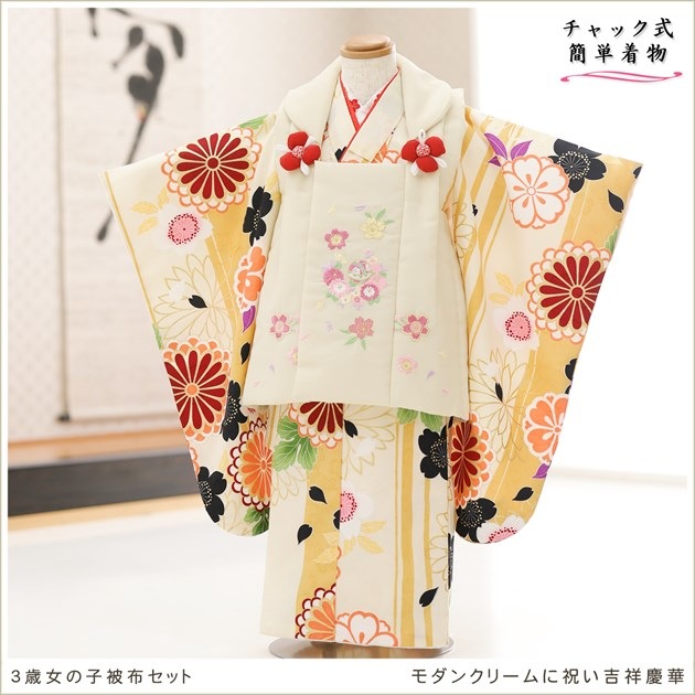 zf0113 (モダンクリームに祝い吉祥慶華 /チャックアップ3歳女の子被布)