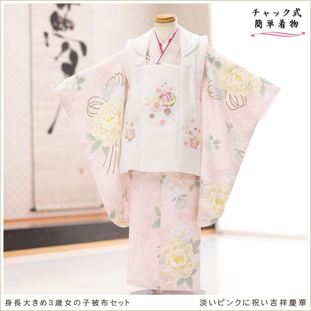 zf0118t (淡いピンクに祝い吉祥慶華 /楽チャック大きめ3歳女の子被布)