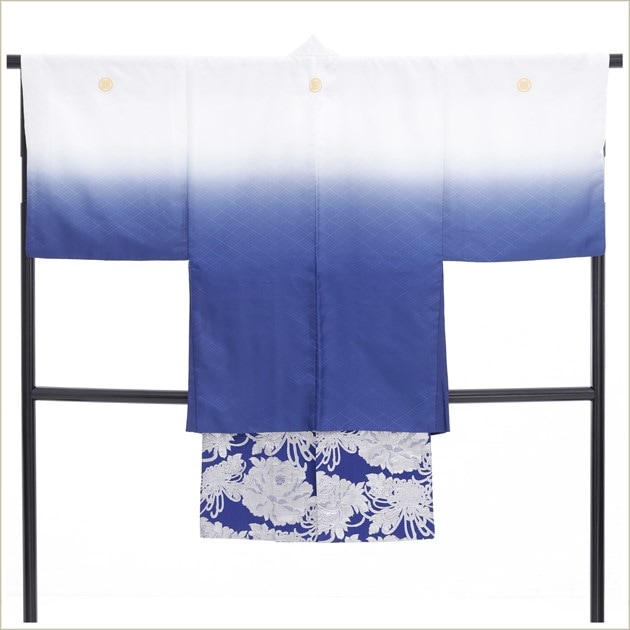mo285(白紺ぼかし×青銀吉祥縁起高級袴 /紋付きフルセット)