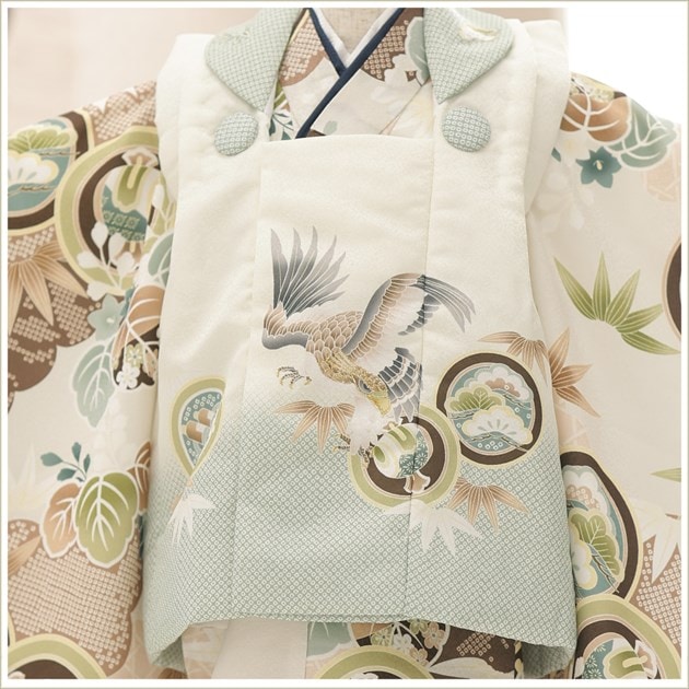 zdf004-5(「陽気な天使」ブランド ホワイトベージュに吉祥飛翔鷹/3歳男の子被布)