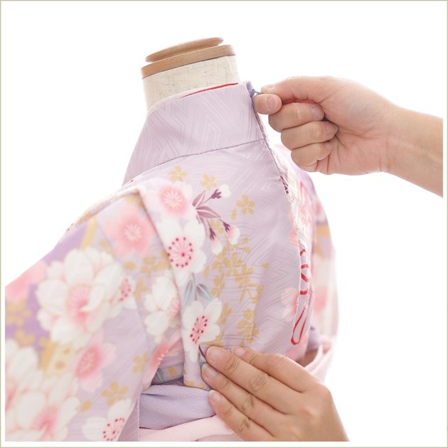 1・足袋を履いて、着物のチャックを広げる 2・着物を置いて足から入る 3・手を通してチャックを一番上まで上げる (※チャックは型崩れしないように少し硬め仕様になっております。) 4・着物についているウェストベルトで体型調整をする 5・付いている帯を後ろで止めて、しごきを結ぶ 6・最後に結び帯を挿し紐を結んで完成! ※約5分程度で簡単に着付けが可能です ※丈が長い場合は付属のウェストベルトで身長のサイズ調整が可能です ◆着せ方の簡易動画はこちらから