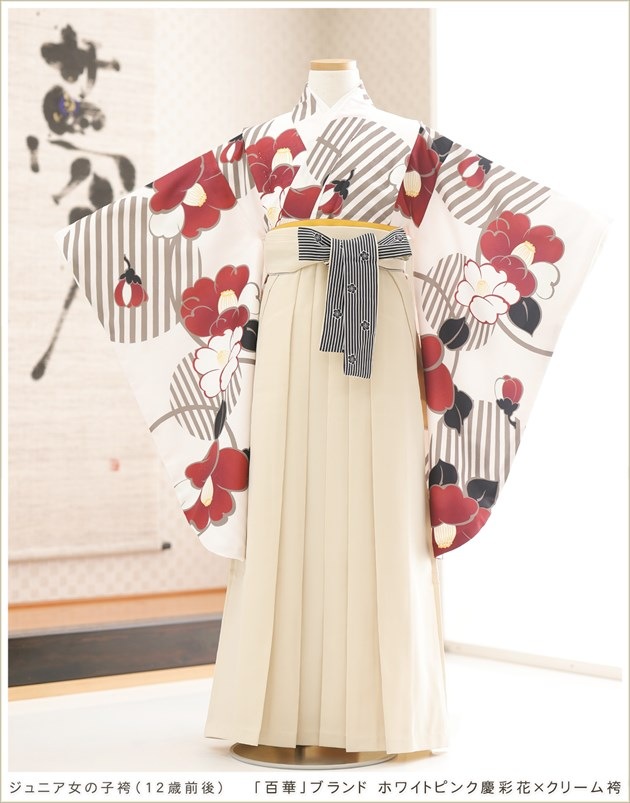 h1709-2(「百華」ブランド ホワイトピンク慶彩花×クリーム袴/小学校卒業式・女の子ジュニア用)