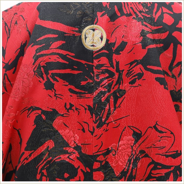 jmo169(12歳前後ジュニア用 赤地アートモダン×黒金ぼかし袴 /紋付きフルセット)
