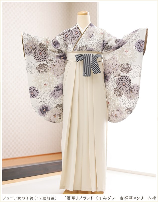 joh5161 (「百華」ブランド くすみグレー吉祥華×クリーム袴 /十三参り・卒業式/女の子ジュニア袴)