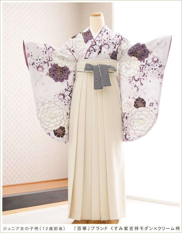 joh5162 (「百華」ブランド くすみ紫吉祥モダン×クリーム袴 /十三参り・卒業式/女の子ジュニア袴)