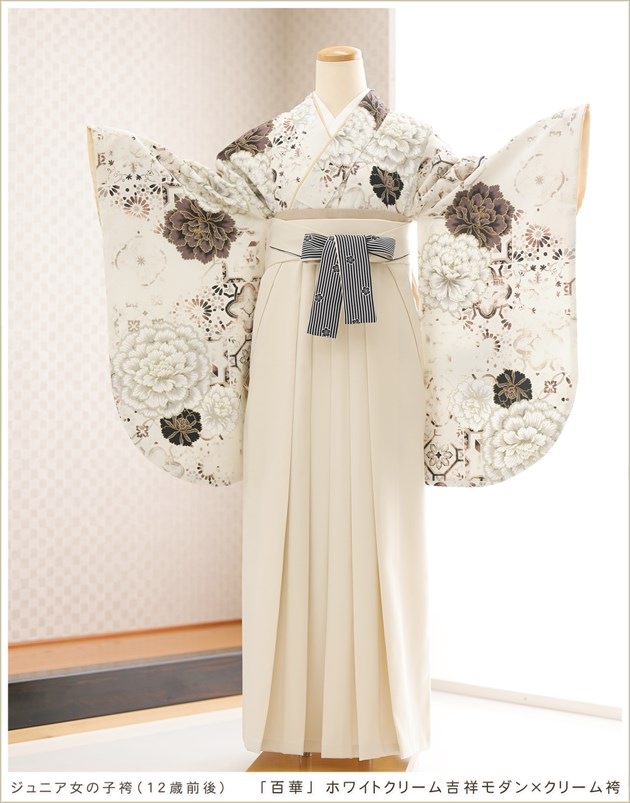 joh5163 (「百華」ブランド ホワイトクリーム吉祥モダン×クリーム袴 /十三参り・卒業式/女の子ジュニア袴)