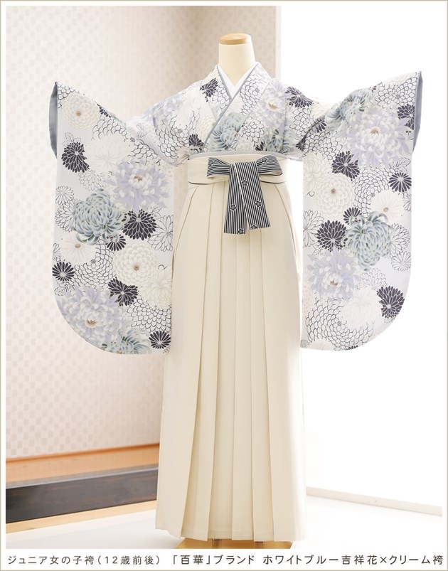 joh5166 (「百華」ブランド ホワイトブルー吉祥花×クリーム袴 /十三参り・卒業式/女の子ジュニア袴)