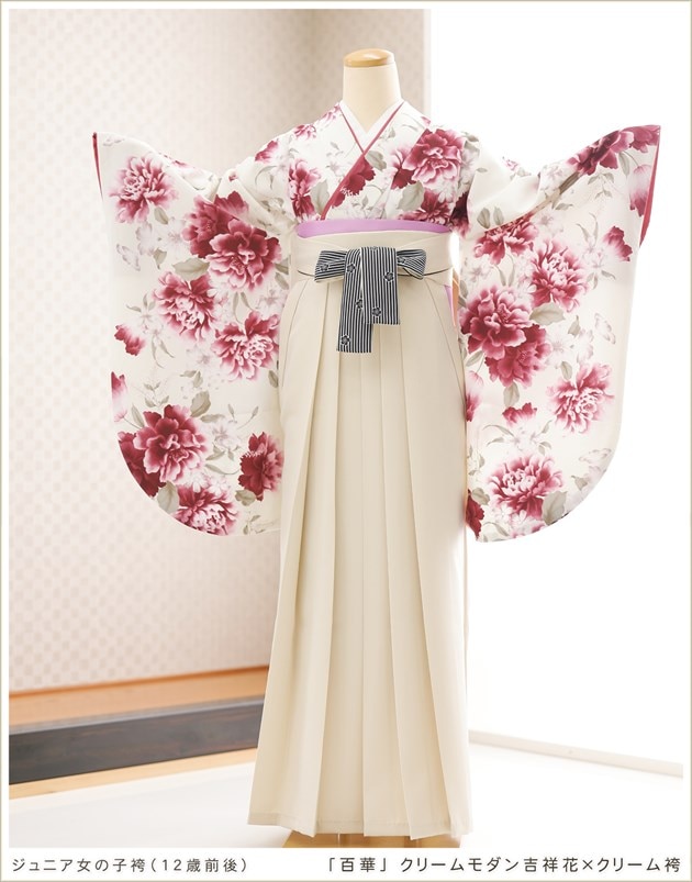 joh5169 (「百華」ブランド クリームモダン吉祥花×クリーム袴 /十三参り・卒業式/女の子ジュニア袴)