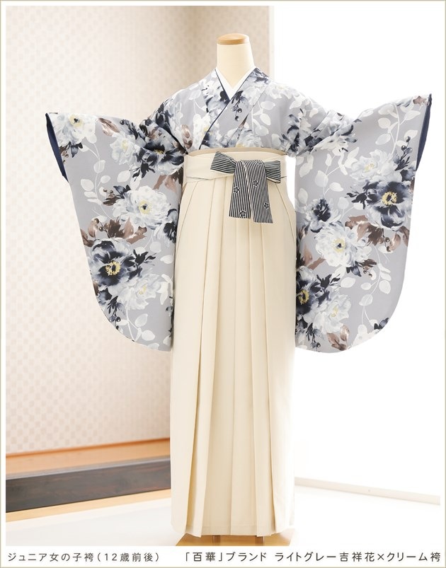 joh5171 (「百華」ブランド ライトグレー吉祥花×クリーム袴 /十三参り・卒業式/女の子ジュニア袴)