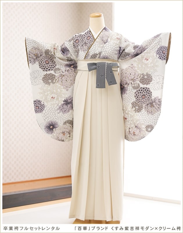 卒業式 袴レンタル oh5162 袴セットレンタル 女性 卒業袴 大学 短大 専門学校 謝恩会 高校生 中学生 大きめ小学生 教師袴 おしゃれ レトロ 3月 4月 人気 春 往復送料無料 2025 高級ブランド「百華」ブランド くすみ紫吉祥モダン×クリーム袴