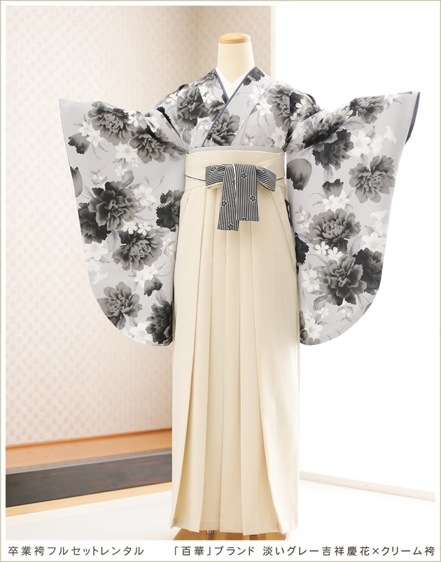 oh5173 (卒業袴レンタル 「百華」ブランド 淡いグレー吉祥慶花×クリーム袴)