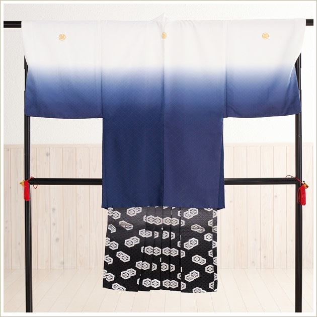 zmo006 (白紺ぼかし×白黒銀ぼかし亀甲袴 /男性紋付袴)