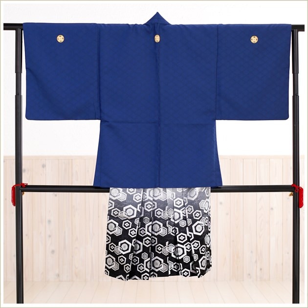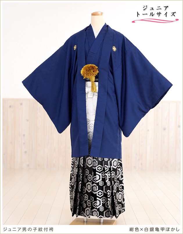 身長高め 158cm〜167cm対応 小学校卒業式 ジュニア 男の子 紋付袴レンタル 十三参り 小学生 jbmo070-4 メンズ 12歳前後 羽織袴 フルセット 着物レンタル 貸衣装 kimono イベント 和服 スタイルネイビー×黒金亀甲ぼかし袴