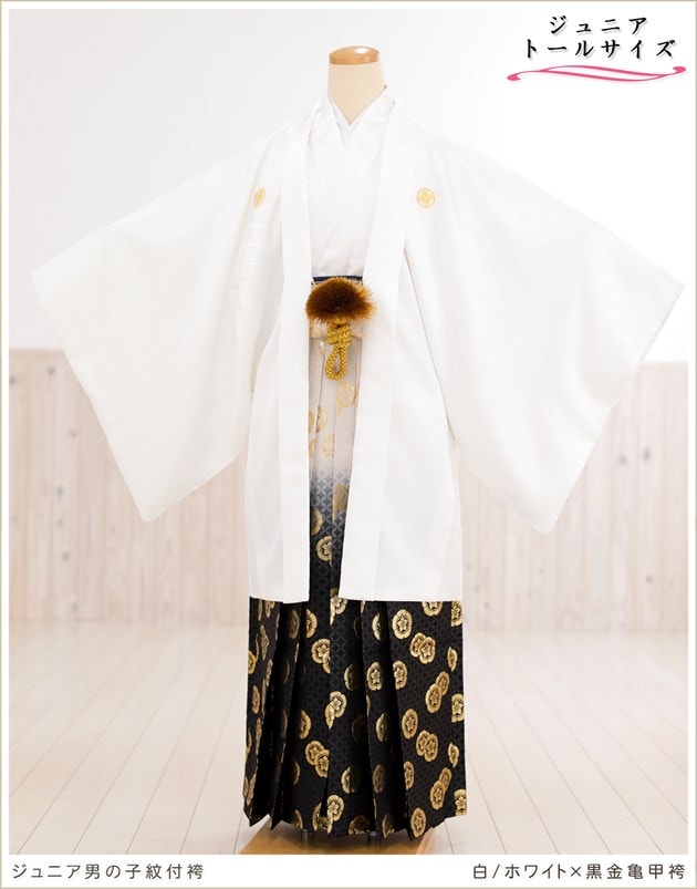 jbmo066-4(白ホワイト×黒金亀甲袴/紋付きフルセット)