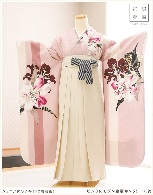 joh1525 (ピンクにモダン慶麗華×クリーム袴 /十三参り・卒業式/女の子ジュニア用袴)