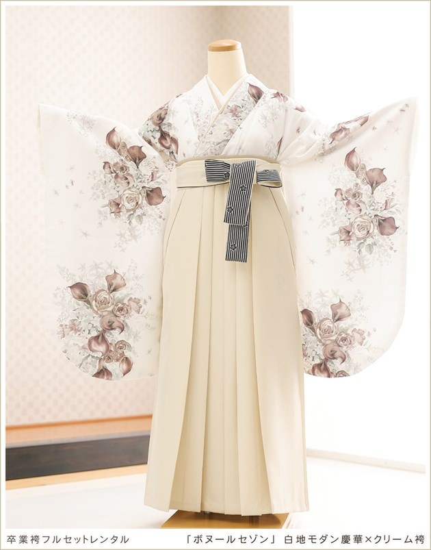 oh5176 (卒業袴レンタル 「ボヌールセゾン」ブランド 白地モダン慶華×クリーム袴)